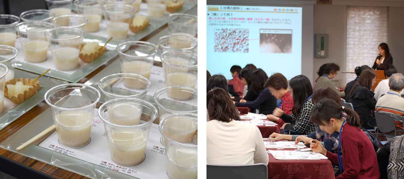 さまざまな種類の甘酒の違いを学べる飲み比べ体験や、甘酒を使ったドリンクやデザートのレシピ紹介など、盛りだくさんの内容となりました。