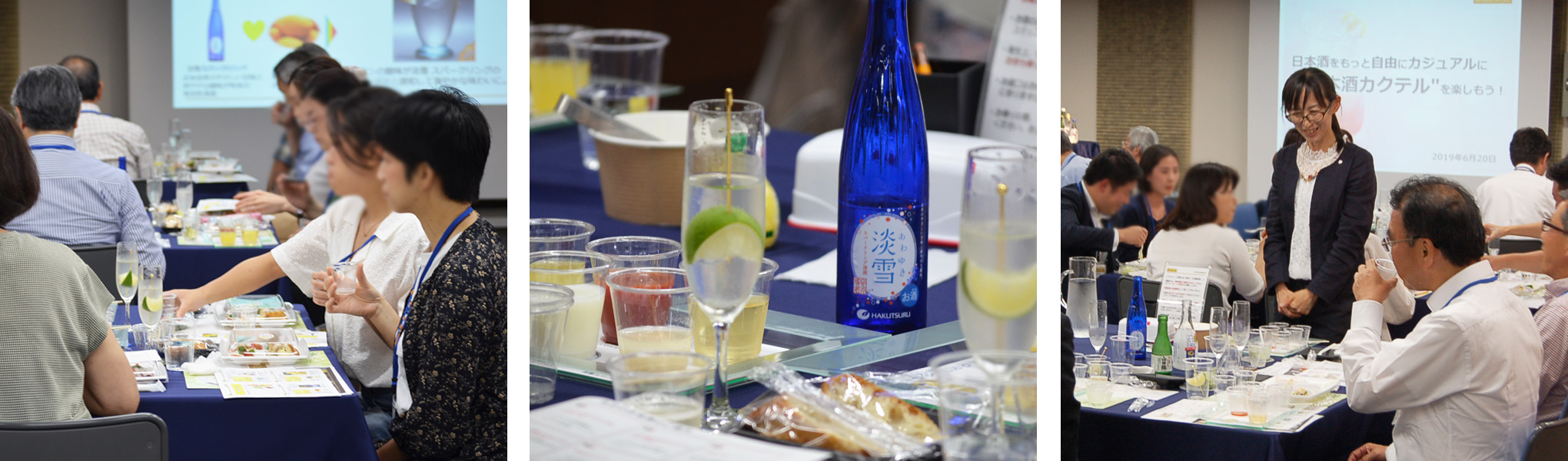 日本酒をもっと身近にする日本酒カクテルセミナーを開催。日本酒の基礎知識を学びながら、日本酒好きな人はもちろん、苦手な人にもおすすめの自宅で手軽に作れる簡単レシピを紹介し、実際に試飲していただきました。
