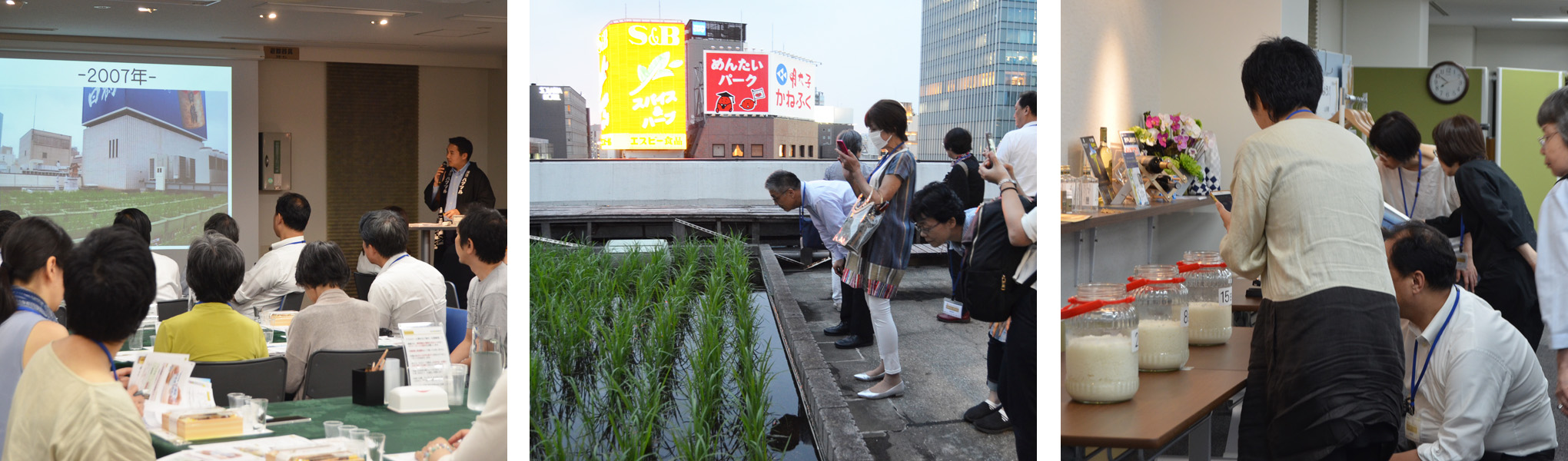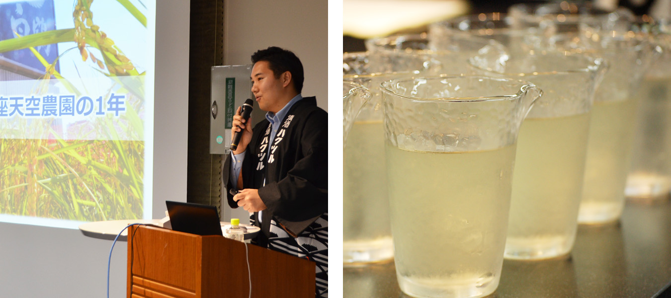白鶴銀座ビル屋上で栽培した酒米『白鶴錦』を使った、銀座仕込みのしぼりたての日本酒を味わえるセミナーを開催。