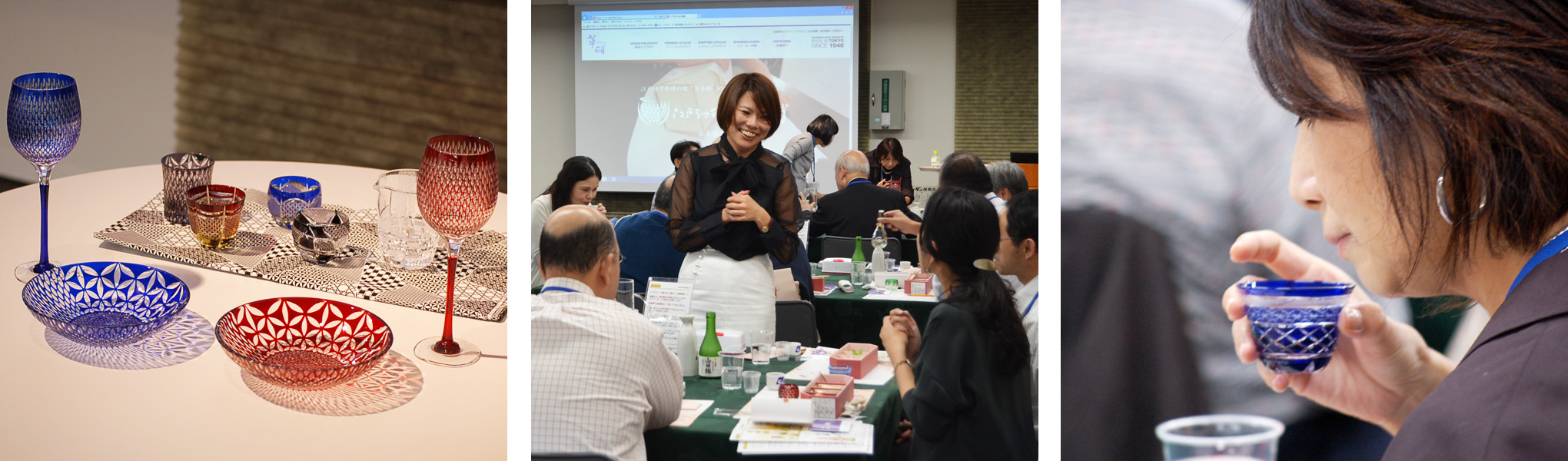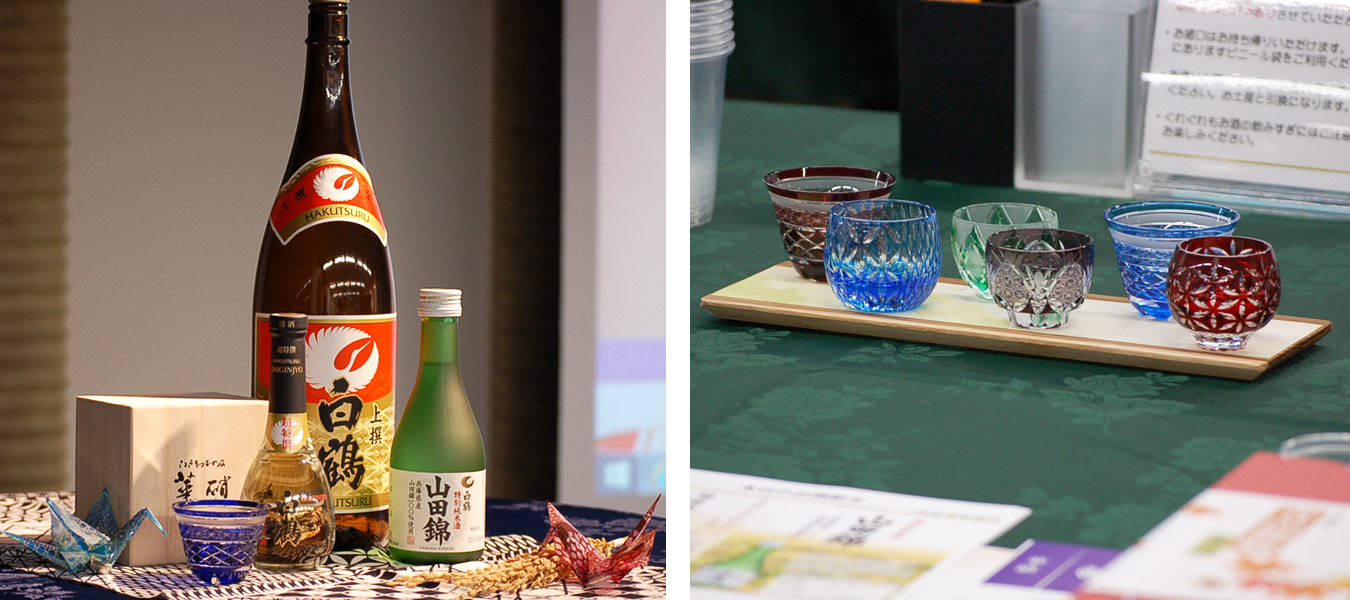 江戸切子のトップブランド「華硝」から講師を招き、日本の伝統文化である江戸切子のセミナーを開催。その歴史や工程、紋様の意味などを学んだ後は、普段はなかなか手にすることができないような高級江戸切子のぐい呑みで、贅沢に日本酒を味わっていただきました。