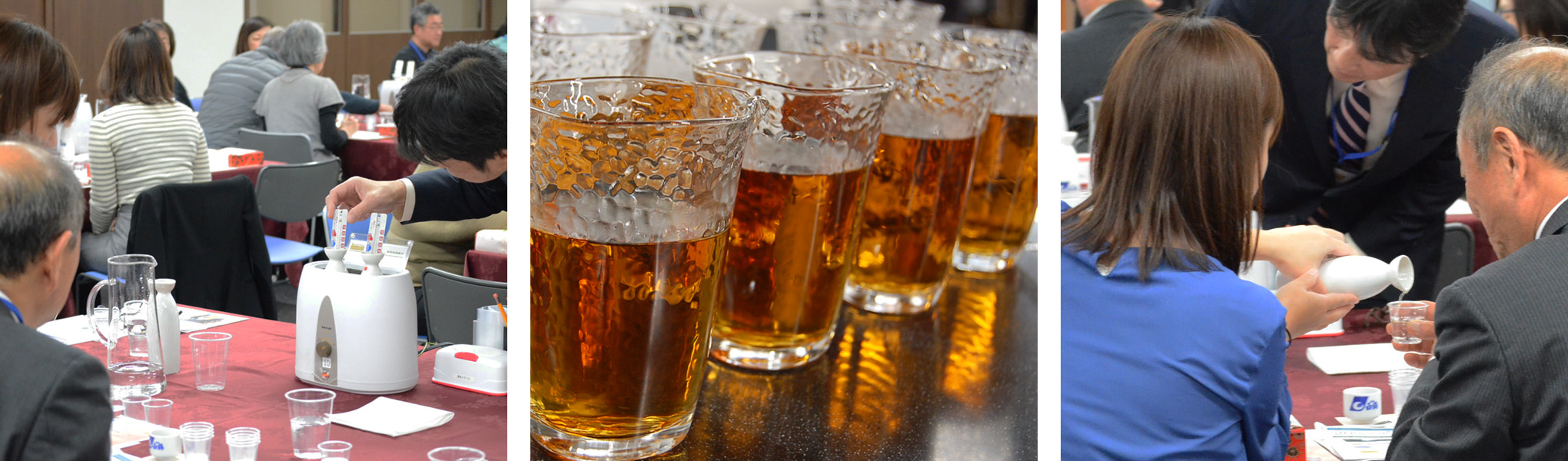 日本酒を湯煎で温め、ぬる燗や熱燗など、温度によって変わる味と香りを体験。その後、燗酒によく合うお弁当と共に、お好みの温度にお燗した日本酒をお楽しみいただきました。